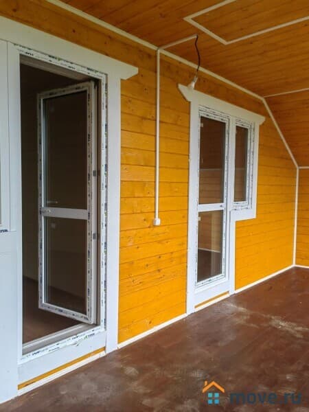 Силовой комплект и внутренние перегородки выполнены из бруса естественной влажности. Окна — пластиковые, двухкамерные стеклопакеты, профиль Proplex + стеклянная дверь выхода на террасу. Кровля — метало черепица, обработана огне –био защитным составом