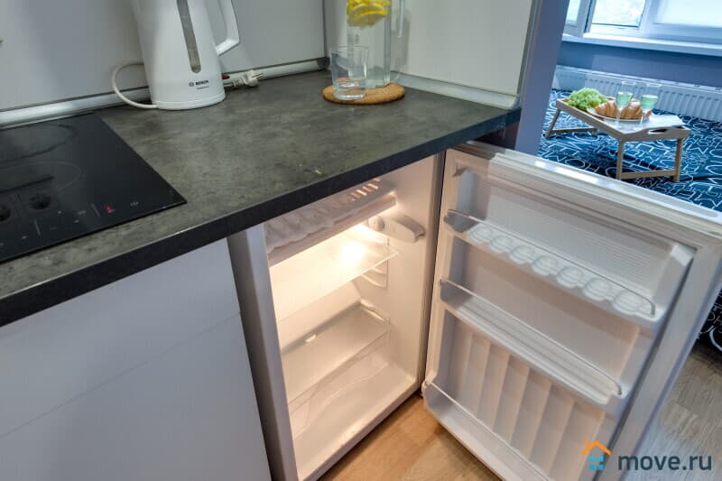 Кухонная зона: Холодильник, микроволновка, электроплита, вытяжка