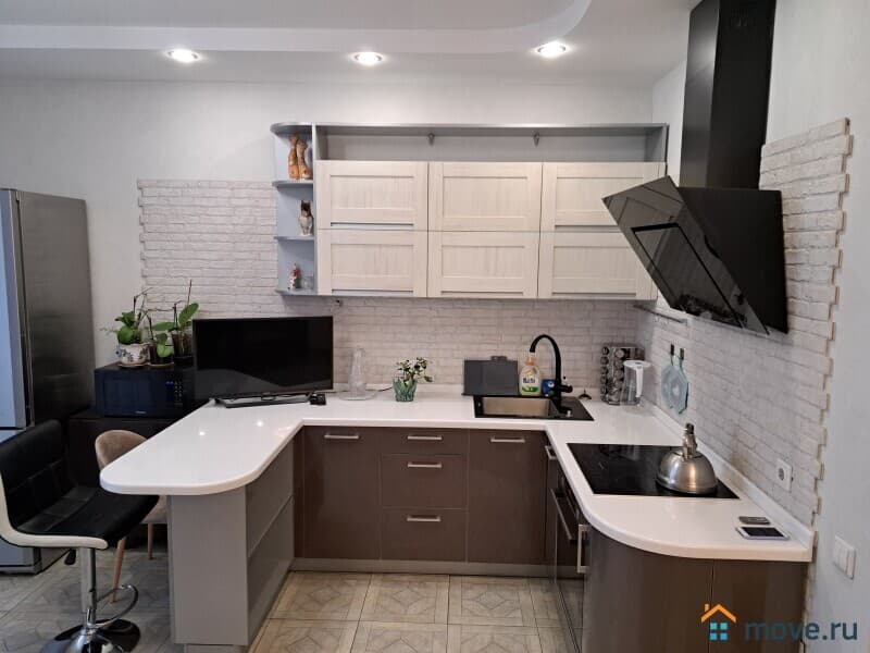 - на кухне вы сможете найти всю технику для приготовления еды: электрическая плита, микроволновая печь, чайник, набор посуды