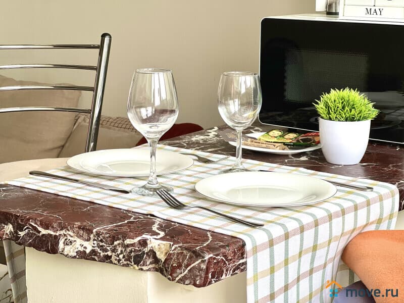 - на кухне вы сможете найти всю технику для приготовления еды: электрическая плита, микроволновая печь, чайник, набор посуды