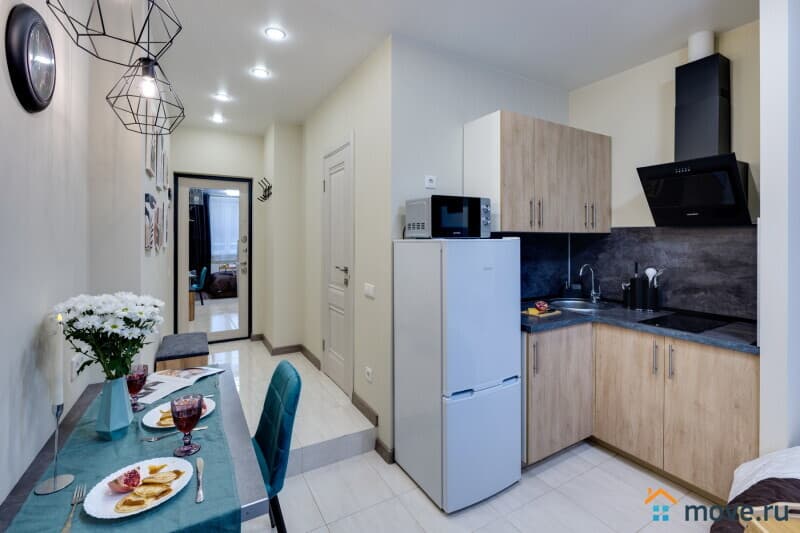 Современная техника: Полноценная кухня с индукционной варочной панелью, стиральная машина, фен, утюг, Smart TV и бесплатный Wi-Fi.