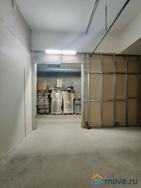 Цокольный этаж с грузовым лифтом (2.5х2.5м - 1 тонна), тепло, свет, вода и туалет в общем коридоре.