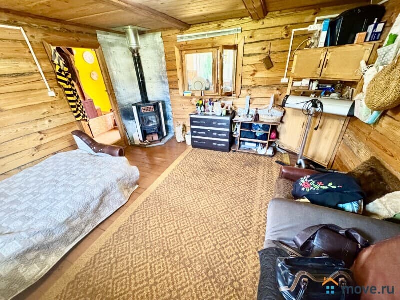 Особое внимание уделено комфортному проживанию даже зимой благодаря установленному камину-печи, создающему атмосферу настоящего деревенского дома. Этот элемент интерьера добавляет особое очарование вечерним посиделкам всей семьей и станет прекрасным местом сбора друзей.