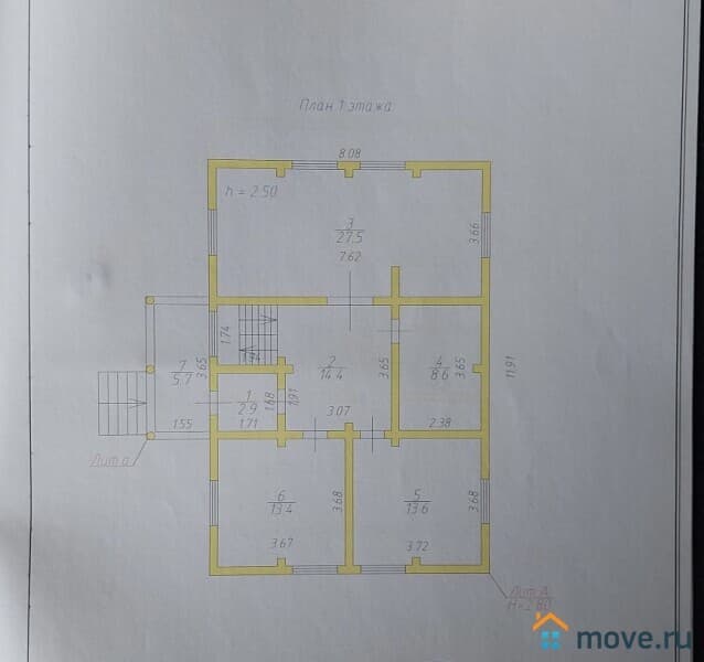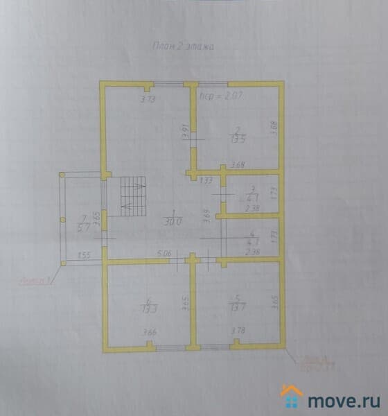 Продам дом по адресу: Московская область, Раменский район, д. Осеченки, ул. Капустинская. Дом построен в 2014 году, из бревна. Площадь дома 159 кв.м., 2 этажа. Расположение в доме: на 1 этаже: прихожая, кухня-столовая 27,5 кв.м., совместный с/у, две жилых комнаты 13,6 и 13,4 кв.м., просторный холл 14,4 кв.м. На 2 этаже: гостиная 30 кв.м., три спальни 13,5+13,7+13,3 кв. м., с/у, балкон. Окна ПВХ, крыша металлочерепица, фундамент ленточный.