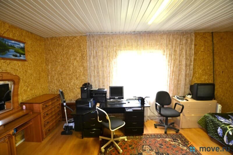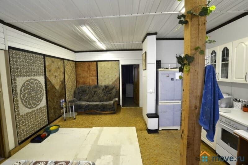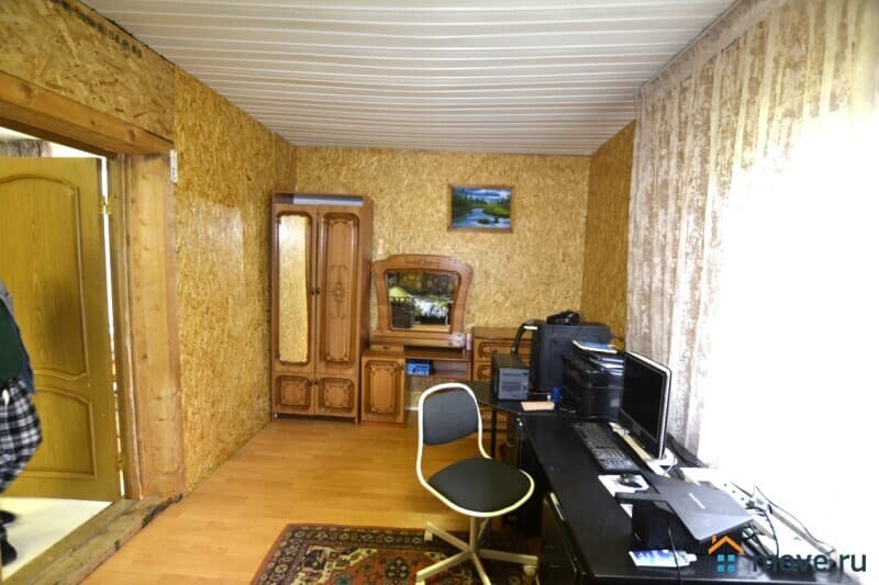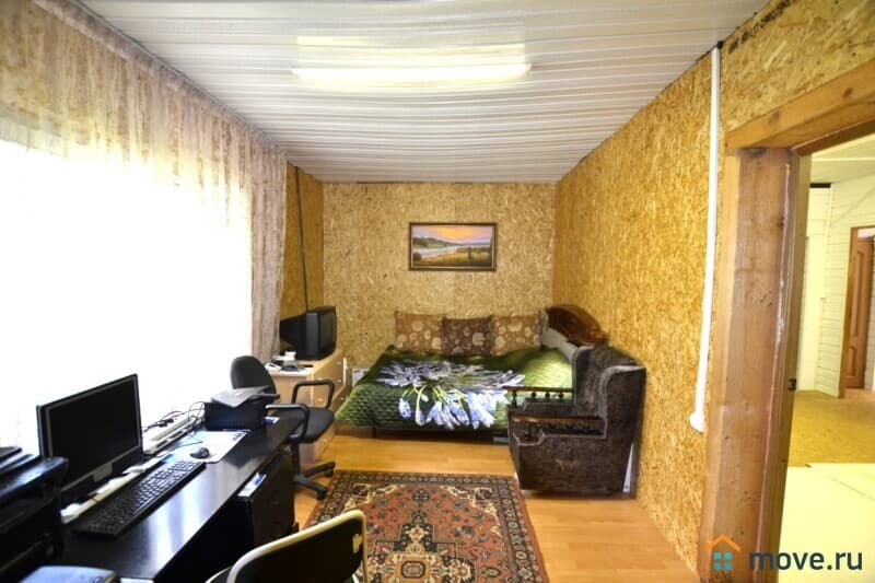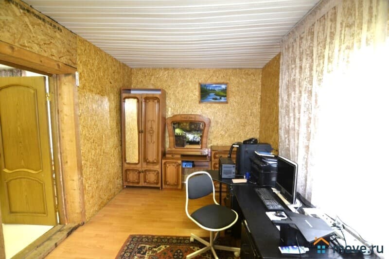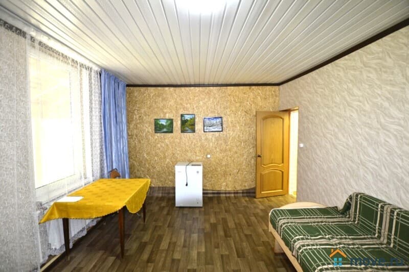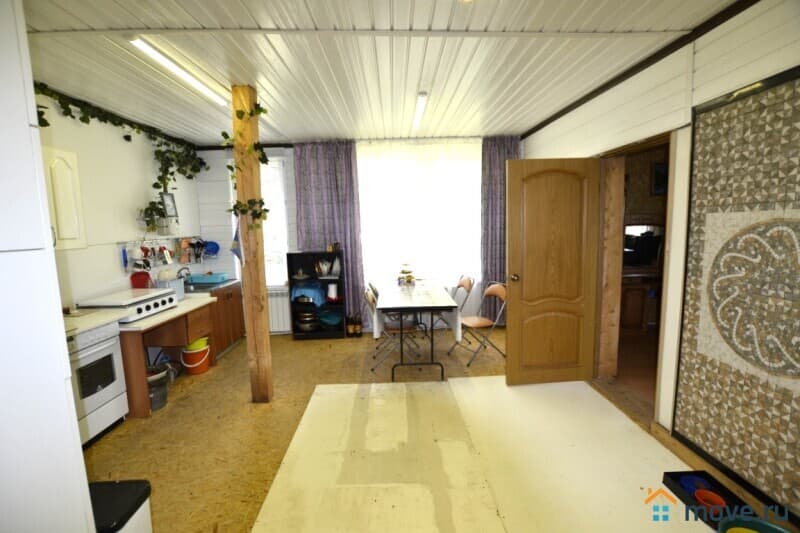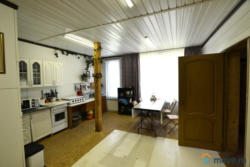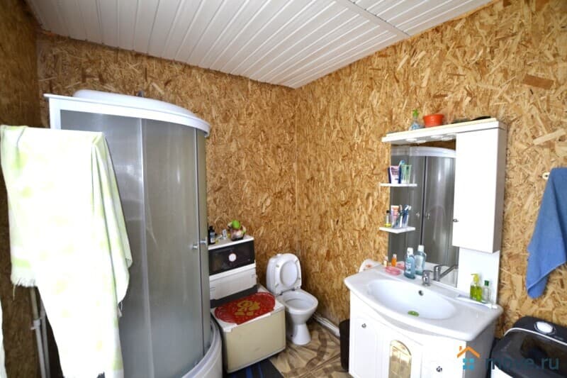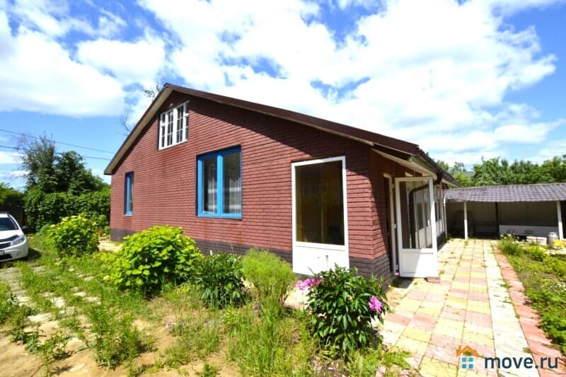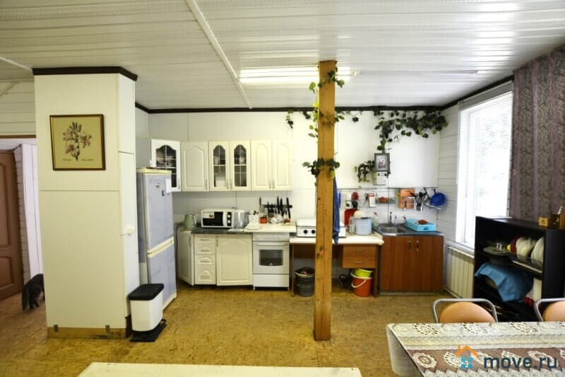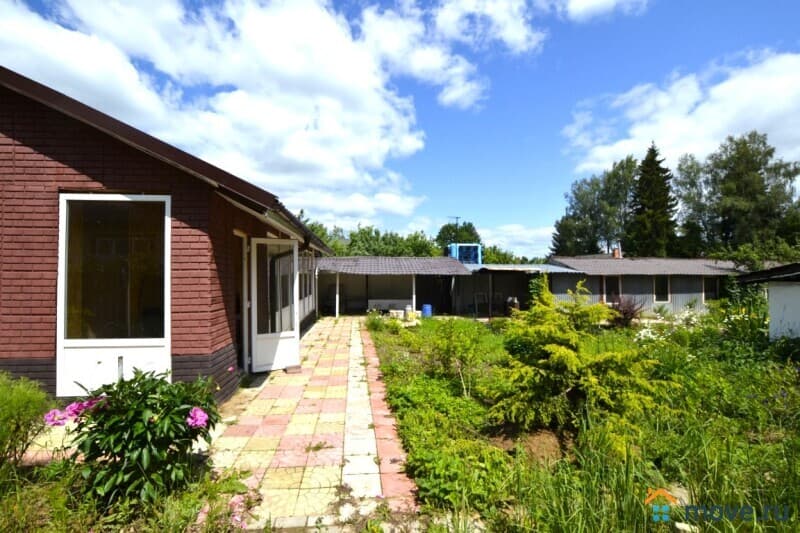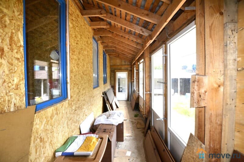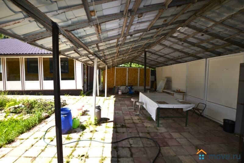 Дом двухэтажный, площадь застройки первого этажа – 100 кв.м., 2-й этаж без отделки. Часть дома из бревна, вторая половина каркасная (Утеплены: стены, полы, крыша + пеноплэкс). На первом этаже кухня – гостиная; 2 просторные спальни; сан/узел с душевой; кладовка; веранда. Крыша покрыта металлочерепицей. Веранда дома связана с большим навесом с мангальной зоной, навес заканчивается бытовкой и другими хозяйственными строениями (с печкой, водоснабжением, в конце фундамент 6х6 из ж.д. шпал, планировал летний сад или баню).