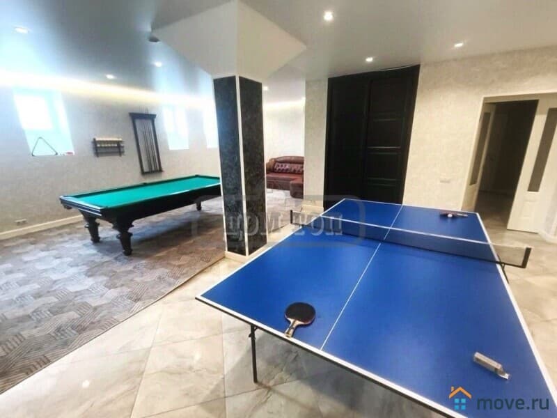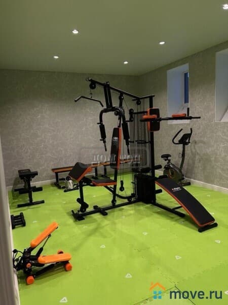 На цокольном этаже: баня на дровах, обливочная с ведром, большой подогреваемый бассейн (29-31 градусов), душ, с/у, спортзал с тренажерами (беговая дорожка, велосипед, гантели и др), комната бильярда и настольного тенниса с диваном и телевизором, домашний кинотеатр.