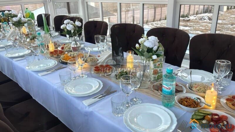 УЧАСТОК: 20 соток. Ухоженная территория, высажен газон, вымощены дорожки. Высажены деревья и кустарники. Сибирский чан. Просторная крытая беседка с дубовым столом и стульями с тандыром, газовой плитой, печью, большимс казаном, горячей и холодной водой. Парковка на 7 автомобилей. На летний сезон устанавливается шатер на 60 персон.