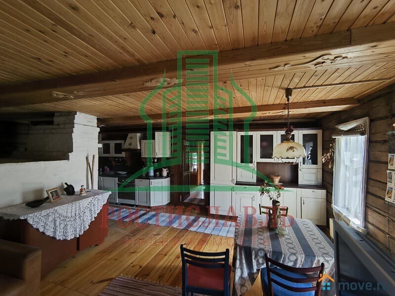 Центральное крыльцо - вход на террасу и на большую веранду. Основная часть дома 63 кв.м поделена на зоны - гостиная, спальня и оборудованная кухня. Сохранена и в рабочем состоянии настоящая русская печь.