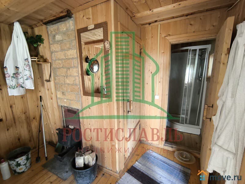 Площадь застройки - 12 х 17 метров, бутовый укрепленный фундамент с новыми отмостками, стены -бревно, заменены полы, бывшие сени - отапливаемое помещение с санузлом, большая комната в летней каркасной пристройке, отделка - имитация бруса, стильные наличники на деревянных окнах.