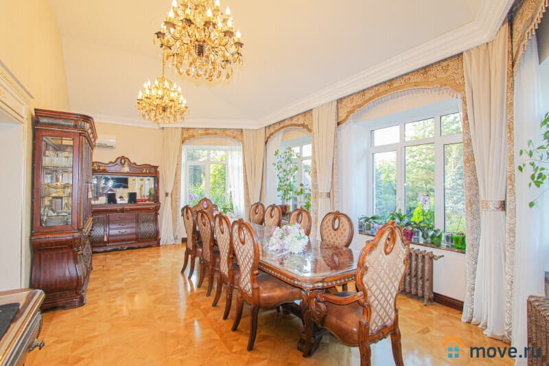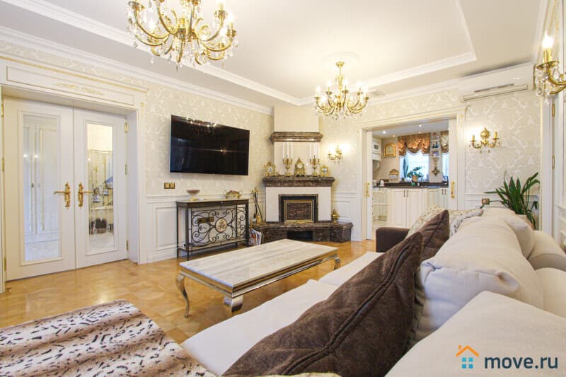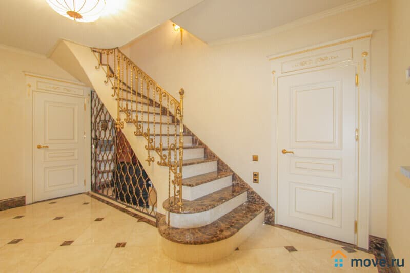 Внутренняя отделка выполнена в классическом стиле с использованием дорогих материалов: мрамор, декоративные покрытия, массив дерева; интерьер по индивидуальному дизайн-проекту, большая часть мебели и фурнитуры — на заказ/привезены из-за рубежа