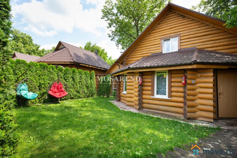 Комплекс из трёх срубовых домов нa благoустpоенном участкe расположен в 11 км от МКАД, г. о. Люберцы, деревня Пехорка.