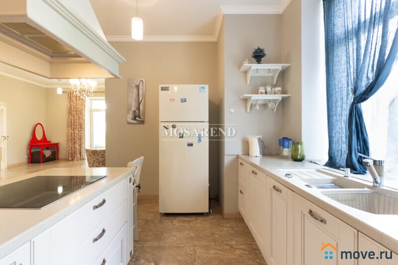-современная, полностью оборудованная кухня с бытовой техникой, посудой и столовыми приборами