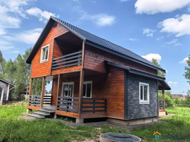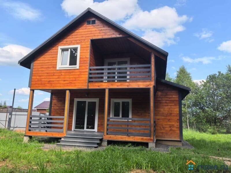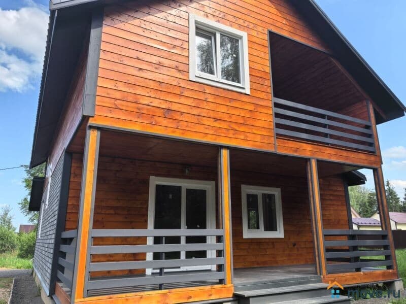 ? Дом построен из бруса 150 мм толщиной, облицован имитацией бруса. Крыша покрыта метало черепицей. Большие окна с ламинацией. Высота потолков 3.0 м .