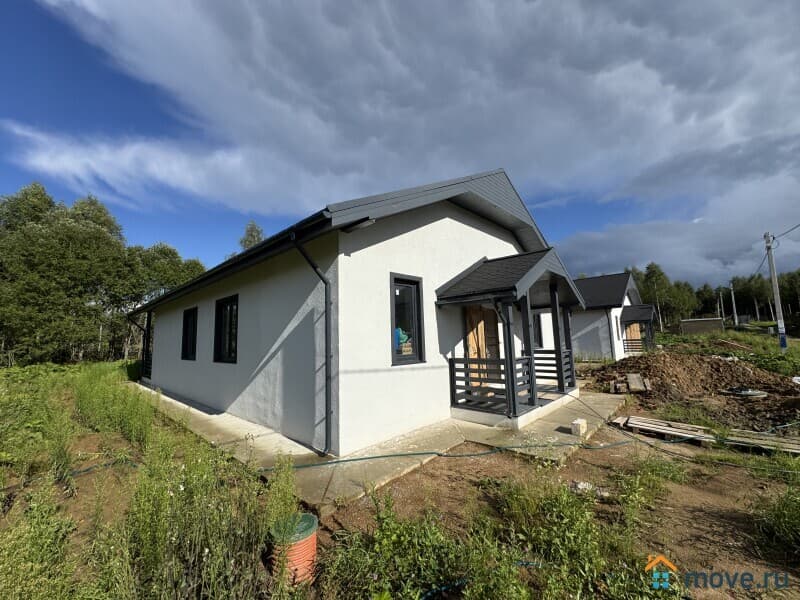 В доме 2 гостевые спальни, мастер-спальня со своим санузлом и кабинетом (или детской) кухня-гостиная с выходом на большую крытую веранду, гостевой санузел, гардеробная, котельная, большой холл и прихожая. Все коммуникации в доме: электричество 15 кВт, вода (собственная скважина), канализация (септик Юнилос Астра 5).