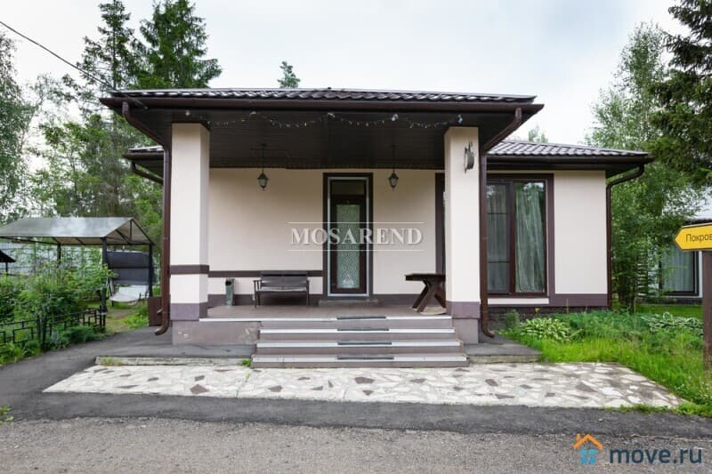 Коттедж "Покров-1" площадью 100 м2 расположен в Жилом парке "Покров" в 30 км от МКАД по Ленинградскому шоссе, в деревне Покров.