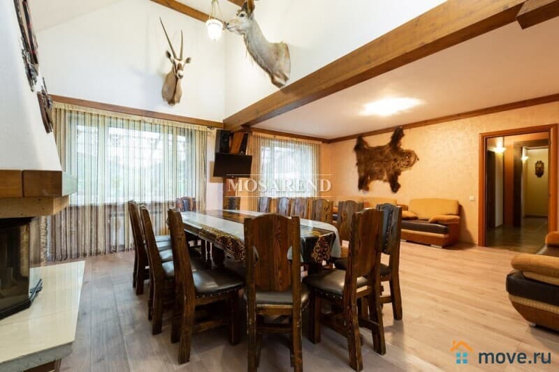 -1 этаж: гостиная с камином в охотничьем стиле, кухня со всей необходимой техникой, 2 спальни, сауна, бассейн, бильярдом, туалет с душем