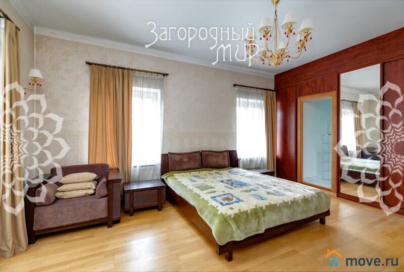 В доме на первом этаже - уютная гостиная с камином, оборудованная кухня-столовая, спальня, санузел, терраса. На втором этаже - просторный холл, кабинет, 3 спальни, санузел, 2 балкона. На мансардном этаже - бильярдный зал, спальня, санузел. В цокольном этаже - бассейн, сауна, тренажерный зал, санузел, бойлерная. Также в доме имеется теплый гараж на 2 автомобиля.