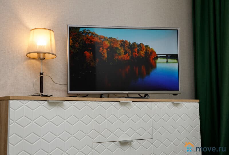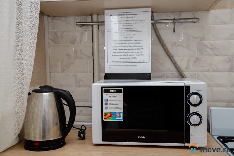 Телевизор, WI-FI, плита, микроволновка, холодильник, чайник, стиральная машина, шкаф.