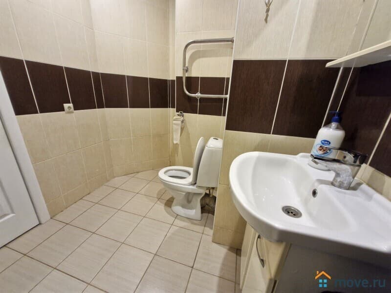 В ванной стиральная машина, туалетные принадлежности, сушилка.