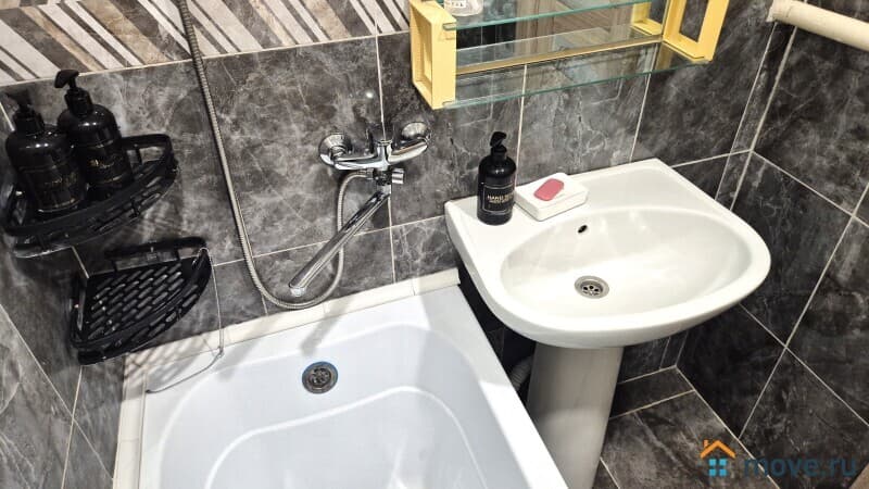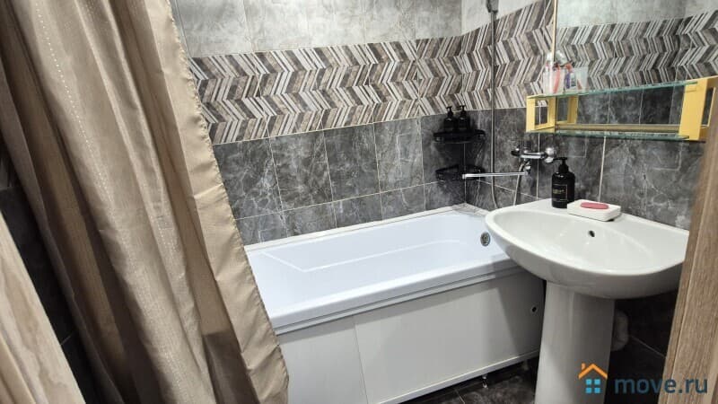 Ванна и туалет раздельно, стиральная машинка, туалетные принадлежности, зубной набор, полотенца, тапочки.