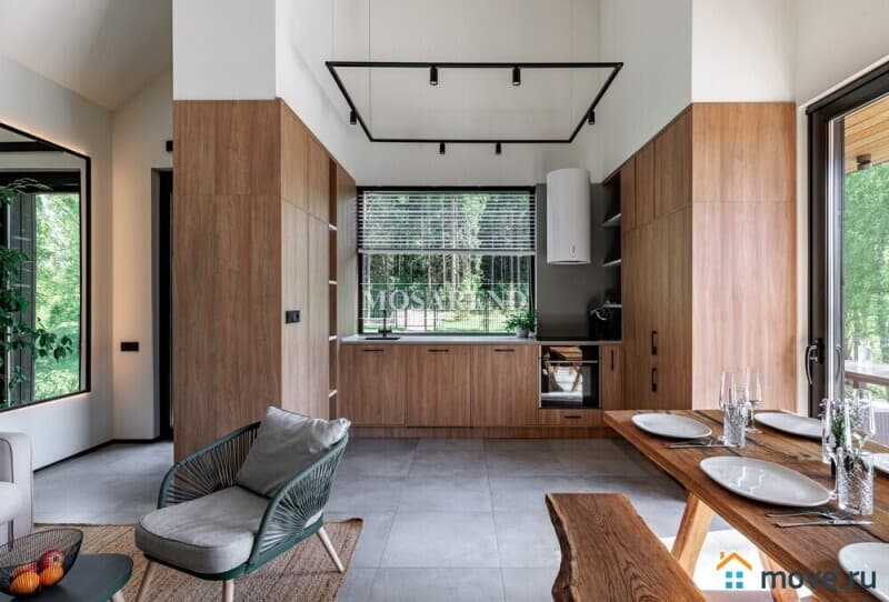 Дом буквально скрыт от глаз лесным массивом, который укрывает его от внешнего мира. Здесь нет ничего лишнего кроме уюта и умиротворения!