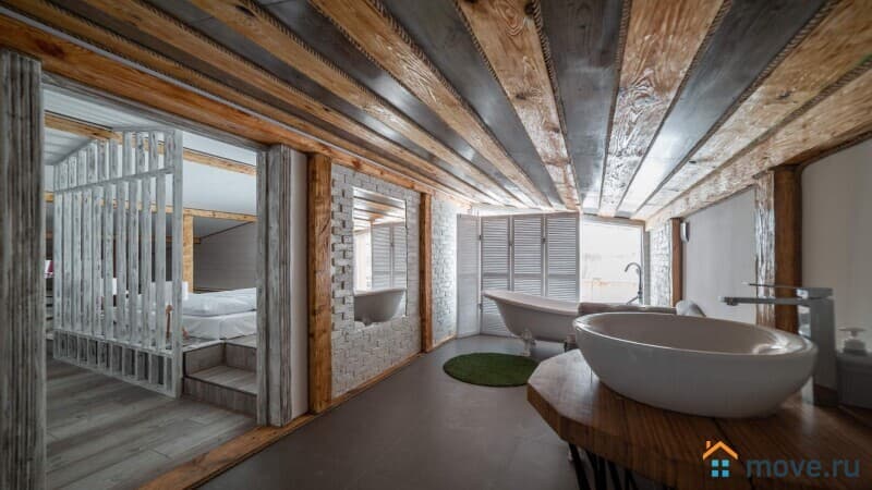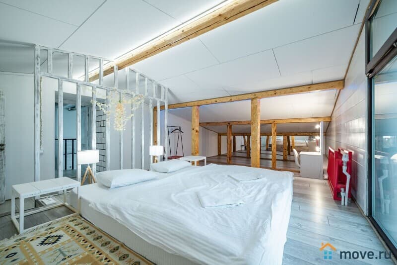 Коттедж общей площадью 900 кв.м. выполнен в современном стиле loft. В доме 10 комфортабельных спален, 10 с/у. Уединенная спальня на втором этаже представляет собой апартаменты для молодожёнов и подходит для проведения свадебных фотосессий. В спальнях коттеджа можно разместить до 24 гостей
