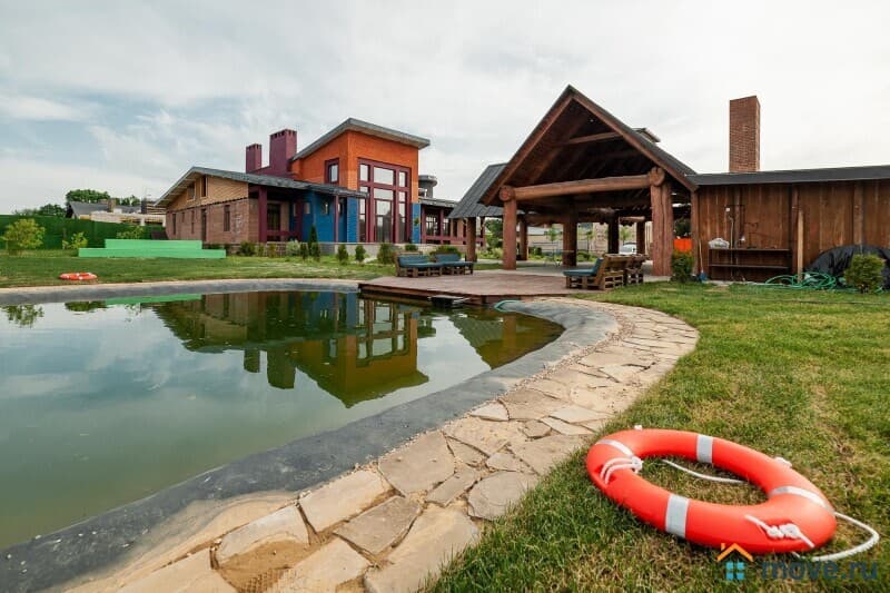 На огромном участке в 40 соток расположена беседка, которая в теплое время года используется как летний ресторан с возможностью проведения банкетов до 100 персон. Рядом с водоемом оборудована площадка для выездной регистрации.