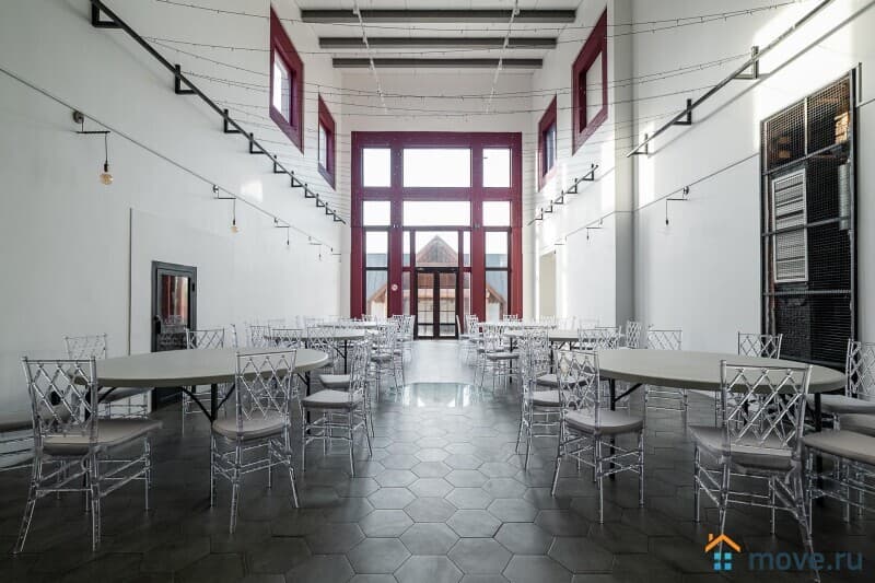 Уникальной особенностью коттеджа является просторный банкетный зал в стиле loft, оборудованный камином. Вид из панорамных окон зала открывается на живописный водоем. Банкетный зал рассчитан на проведение банкетов до 80 и фуршетов до 120 персон. В доме оборудована открытая веранда для выездной регистрации.