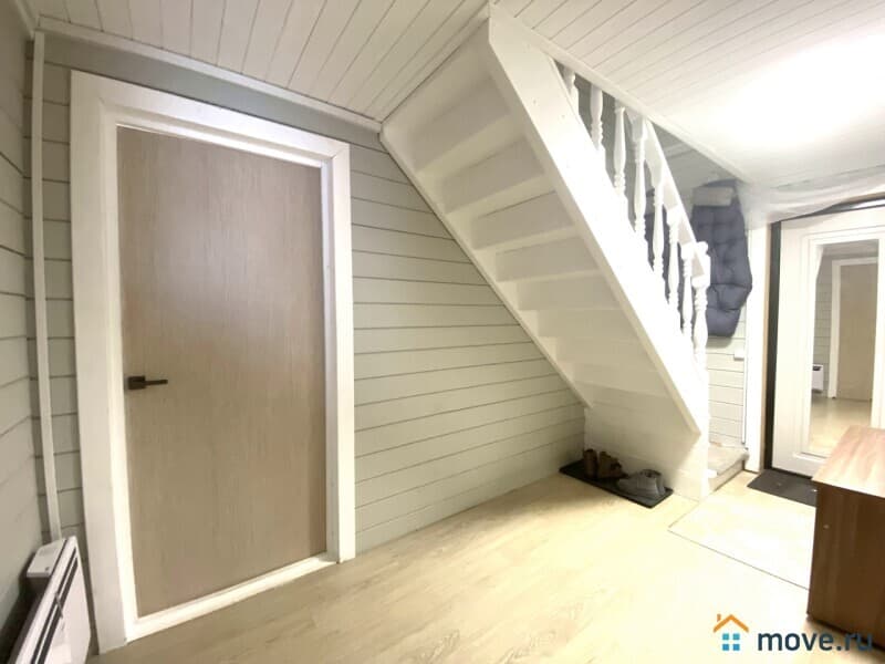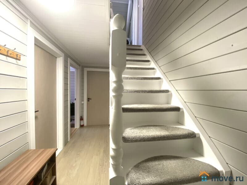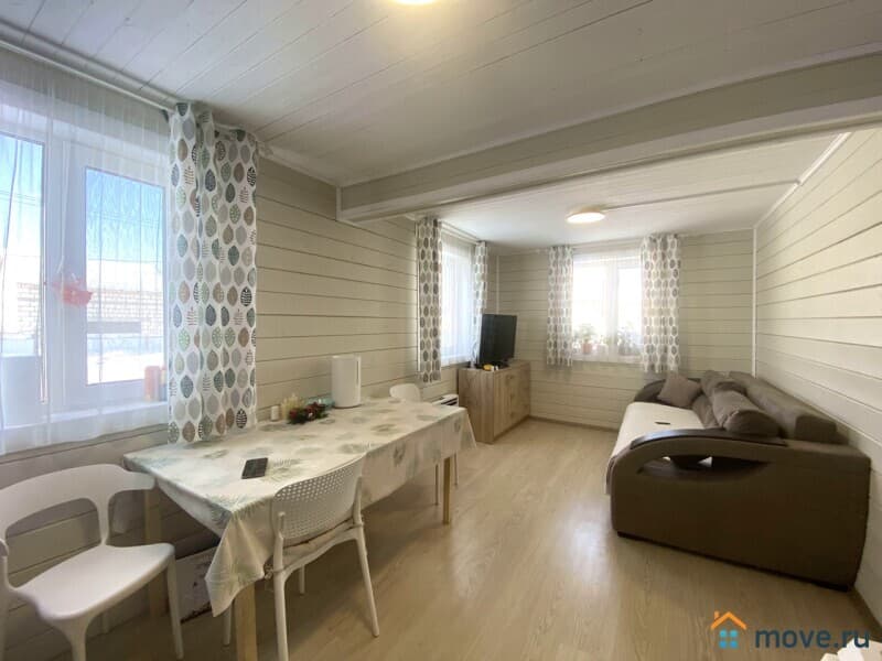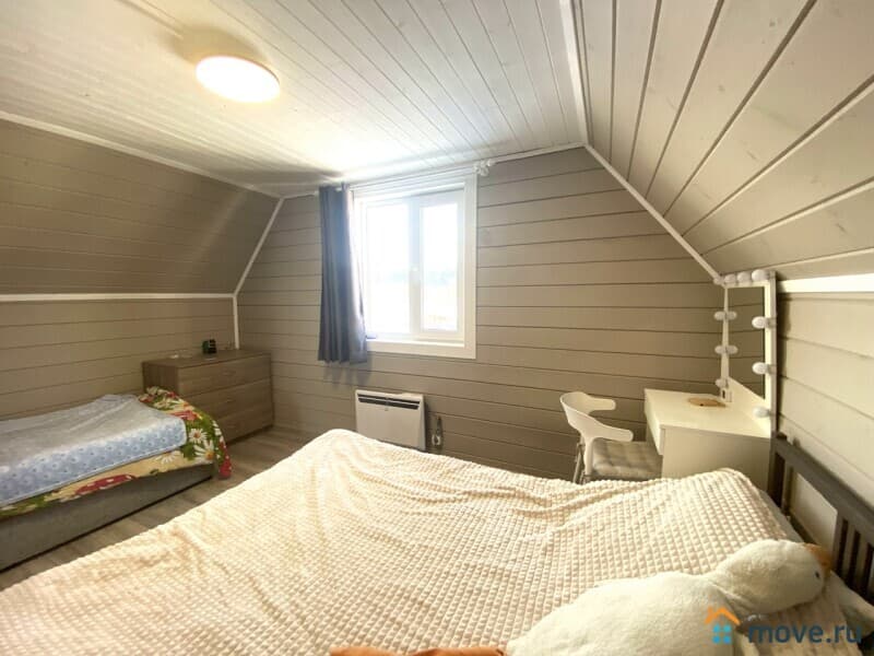Общая площадь 75 кв. м., прихожая, кухня гостиная, четыре изолированные комнаты, санузел совмещён, установлена душевая кабина, очень удобная лестница на второй этаж. Надёжный свайно-ростверковый фундамент, дом щитовой утеплён полностью минеральной ватой, крыша металлочерепица.
