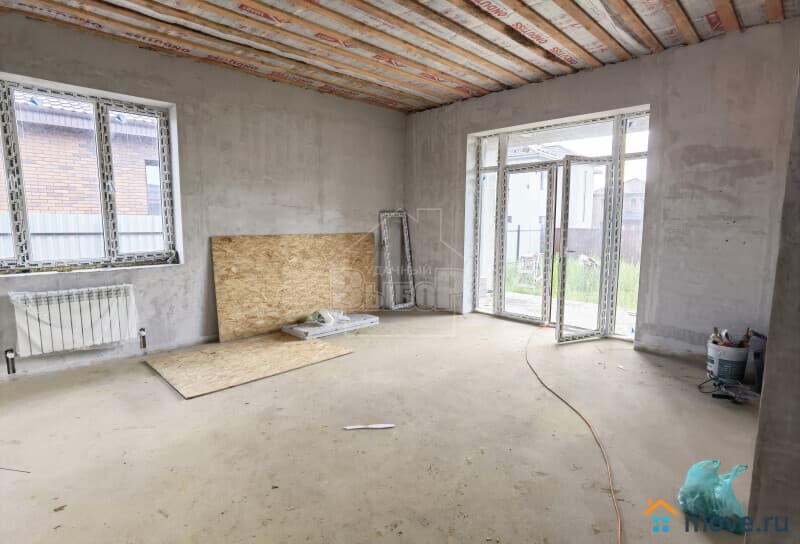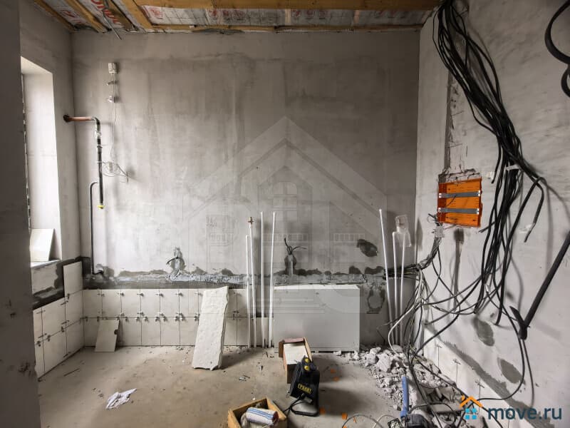 В доме выполнена частично отделка, полностью разведена электрика, сантехника, отопление комбинированное - тёплый пол + радиаторы.