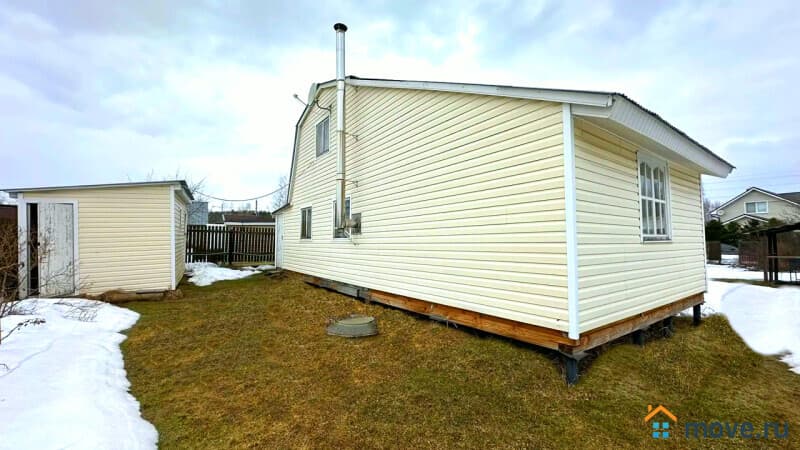 Общая площадь 75 кв. м., кухня-гостиная просторная, три комнаты, удобная лестница на второй этаж. Надёжный свайно-ростверковый фундамент, дом каркасный.