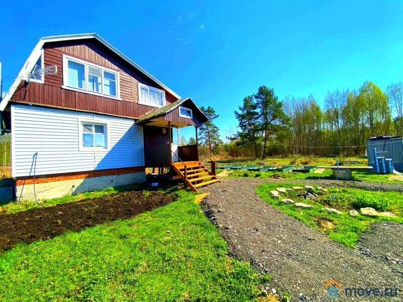 Предлагаем Вашему вниманию отличную дачу! На надёжном ленточном фундаменте, первый этаж из бревна, второй мансардный, 1995 года постройки. Общая площадь 65 кв. м. Кухня 10 кв. м. Первый этаж- прихожая, кухня, большая комната, санузел, удобная лестница; на втором-две комнаты. Светлый, тёплый, чистый, приятный дом!