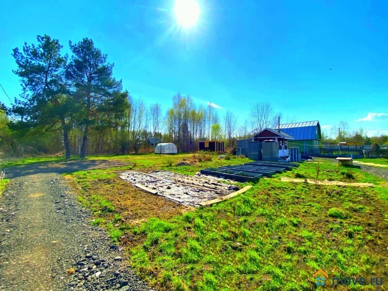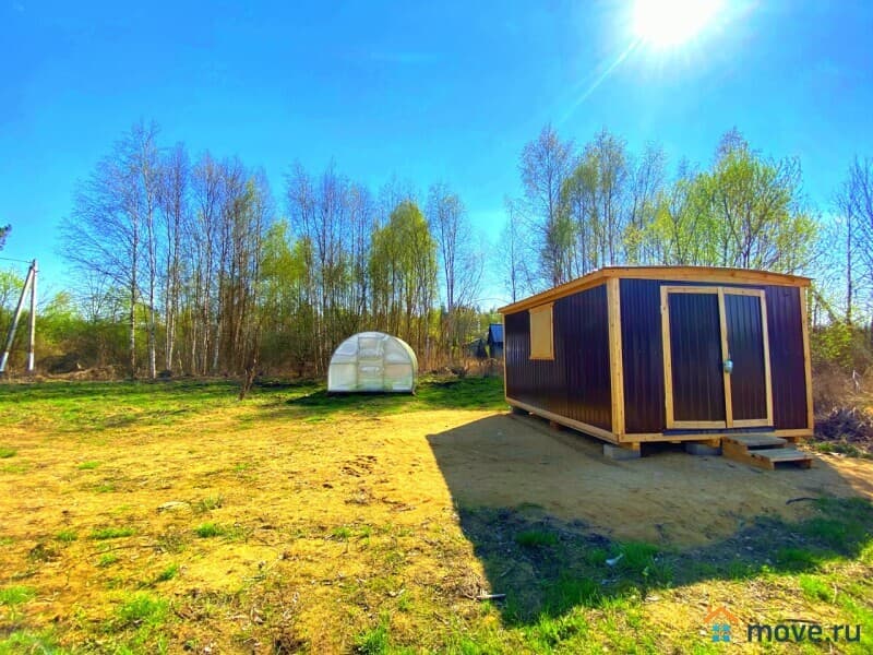 Бревенчатая русская баня, вода также заведена, новый хозблок, парник, навес оборудовали для беседки.