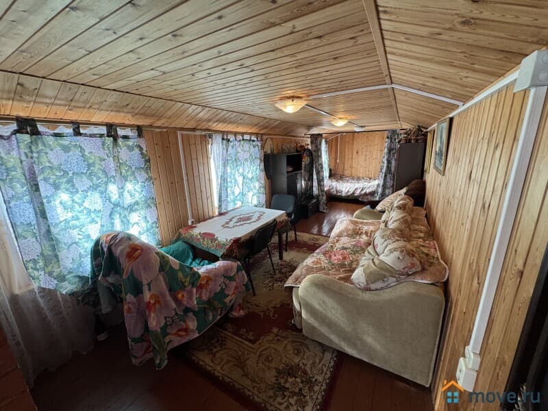 Этажность дома - 2 , материал - бревно и брус, фундамент - ленточный, кровля - ондулин., внешняя отделка - сайдинг, внутренняя отделка - вагонка, полы и перекрытия утеплены 200 мм, окна-пластиковые стеклопакеты, металлическая входная дверь, бетонная армированная отмостка у дома.