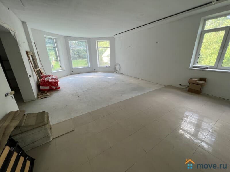 Планировка дома: коридор 15 кв.м., 2 с/у отделаны плиткой, кухня-гостиная 51 кв.м. с панорамным остеклением, прихожая 30 кв.м., 4 комнаты 43/25/22/15 кв.м., крыльцо.