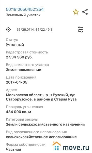 Продается земельный участок 43.4 Га - 4340 соток в окружении леса граничит с СНТ "Ручеек-2", вблизи п. Старая Руза и д. Жиганово, Рузского городского округа, Московской области.