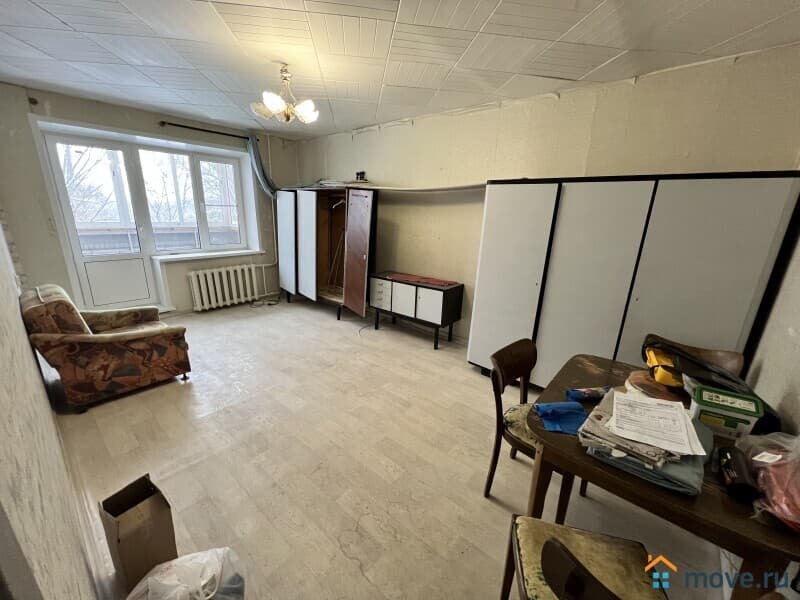 -Одна большая жилая комната с выходом на застекленный балкон.