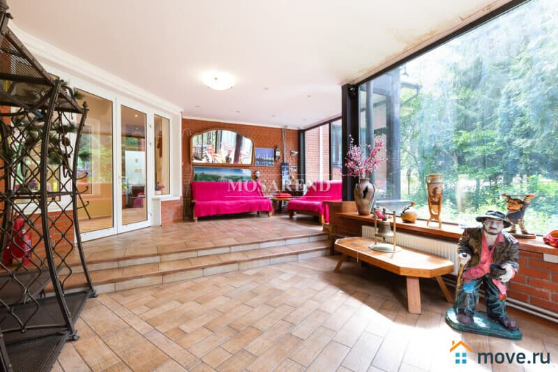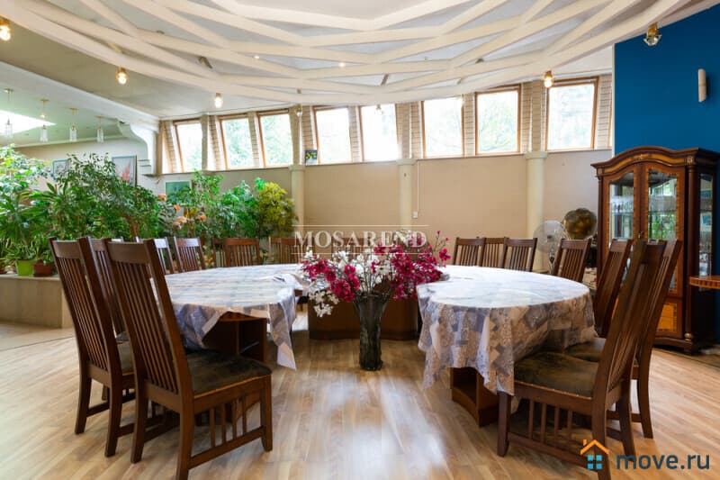 - читальный зал (тёплая веранда) с панорамными окнами, большим круглым стеклянным столом, кожаными диванами