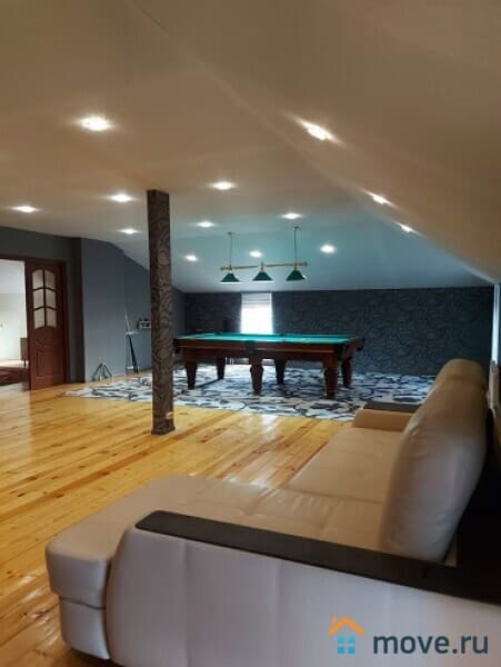 Остается вся дорогая мебель, встроенная техника, тренажеры и стол для биллиарда.