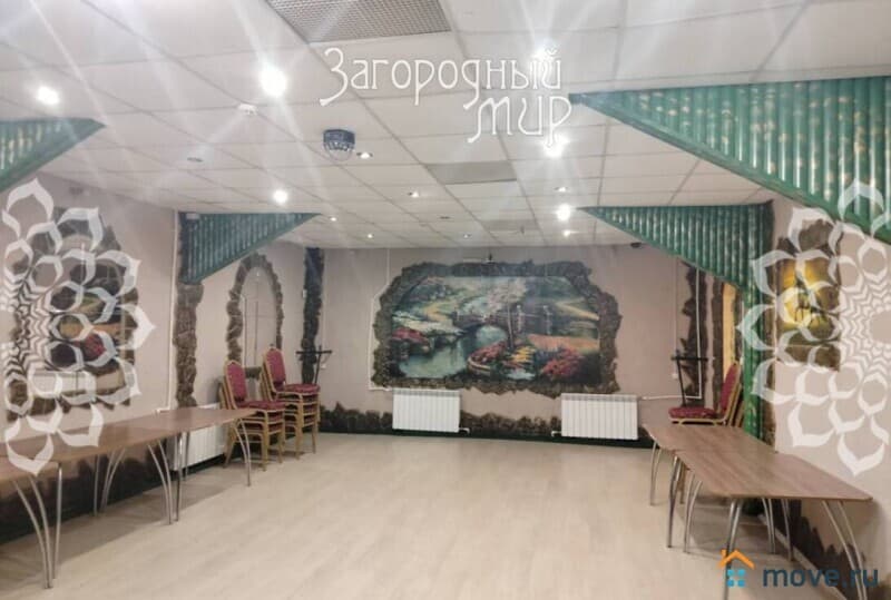 В здании кафе на первом этаже два банкетных зала по 50 кв.м, кухня 29 кв.м, холл 20 кв.м, кабинет 10 кв.м, санузел. Кухня полностью оборудована и функционирует. Есть небольшая летняя площадка.