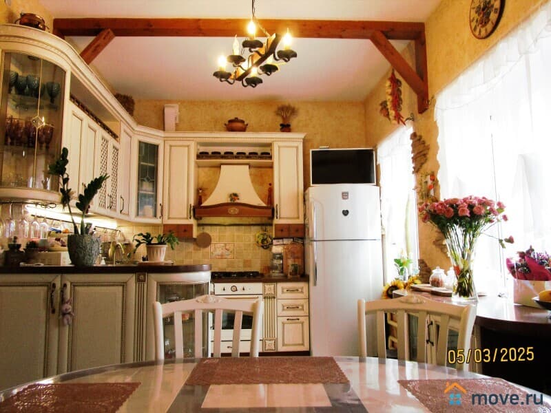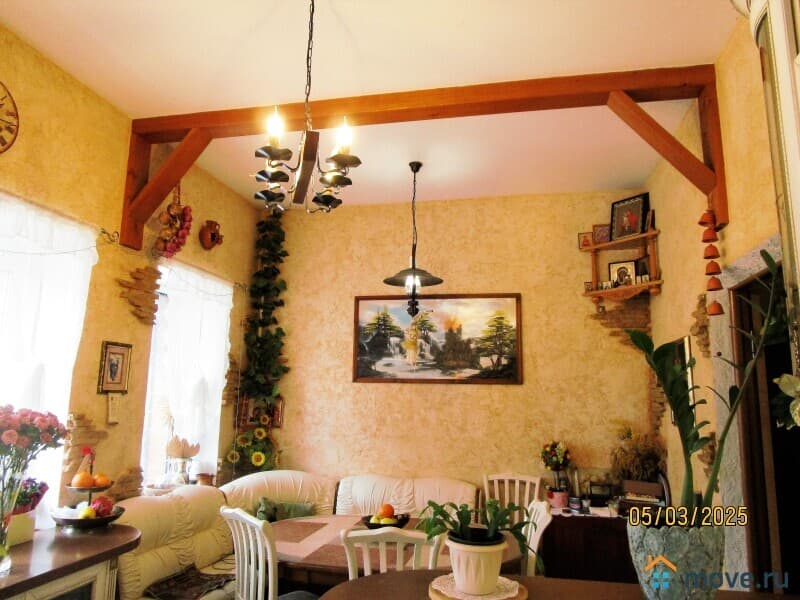 В доме все предусмотрено для большой семьи. Внизу дома цокольный этаж: Помещение под сауну, бассейн, действующий санузел, и подвальное помещение котельная, кладовая для хранение продуктов (овощей и заготовок). 1 этаж: кухня 20 м, гостиная 38 м, холл 22 м,. 2 этаж: 4 спальни, гардеробная, санузел большой 12м с 2мя раковинами и большой угловой ванной, застекленная лоджия 24м. так же просторный мансардный этаж. Остается посудомоечная машина, установлены кондиционеры.