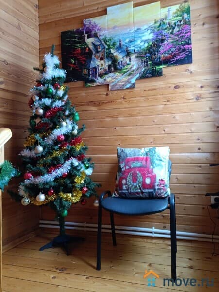 кухня, ванная в доме, 3 отдельные спальни (на втором этаже), в каждой двухместная кровать и диван-кровать внизу, есть детская кроватка, кухня с посудой