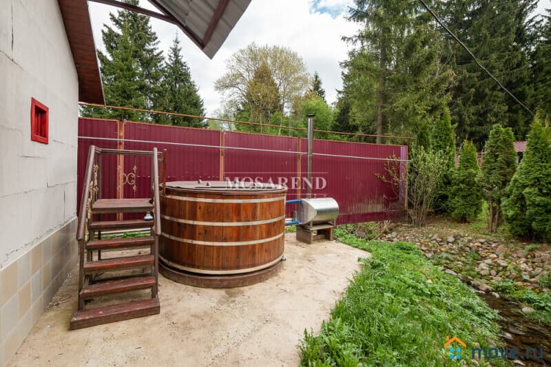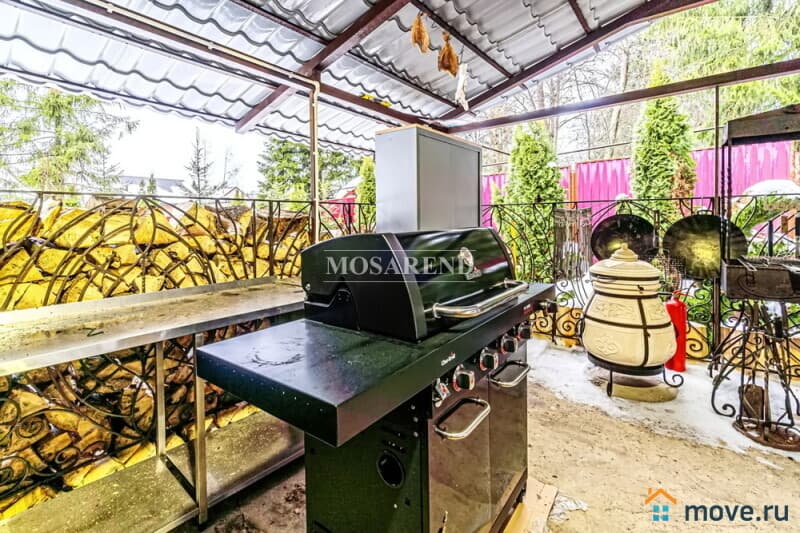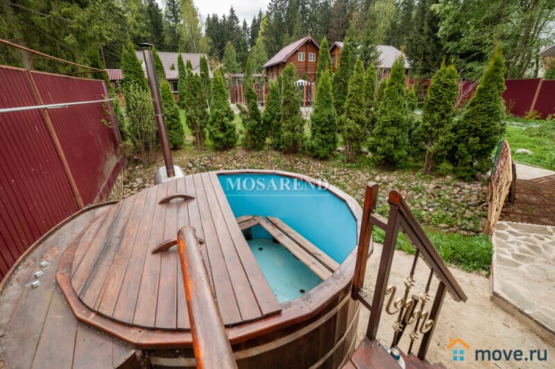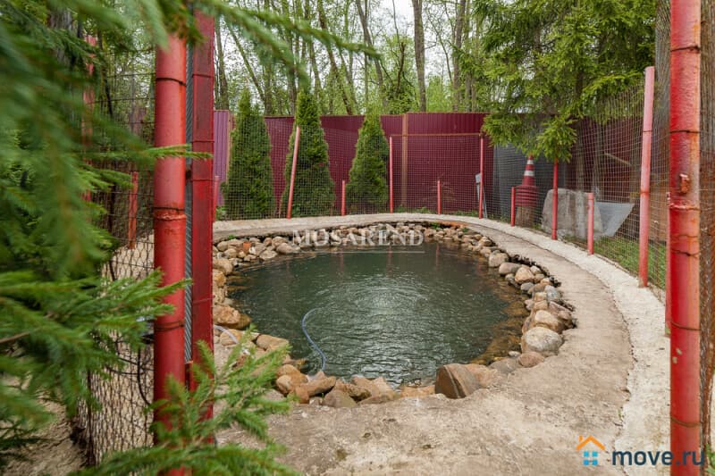 Также на территории есть отдельностоящая баня на дровах (парная на 5-6 человек), отапливаемая беседка на 14 гостей, здание с русским бильярдом и проектором, зона барбекю под навесом (мангал, тандыр, казан, коптильня, самовар, американская BBQ), большой пруд глубиной 2м для купания, чан с гидромассажем. В зимнее время года пруд может использоваться как купель.