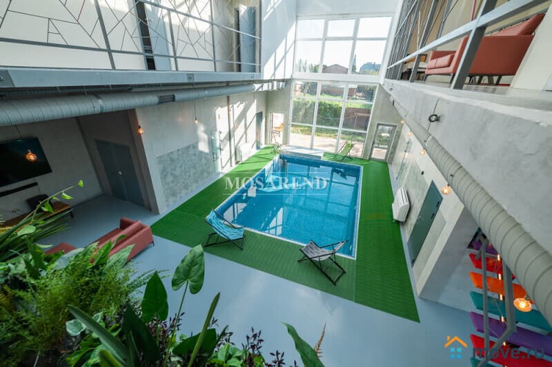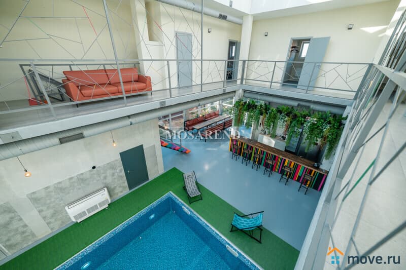 -особую атмосферу создаёт стеклянный атриум, расположенный над бассейном