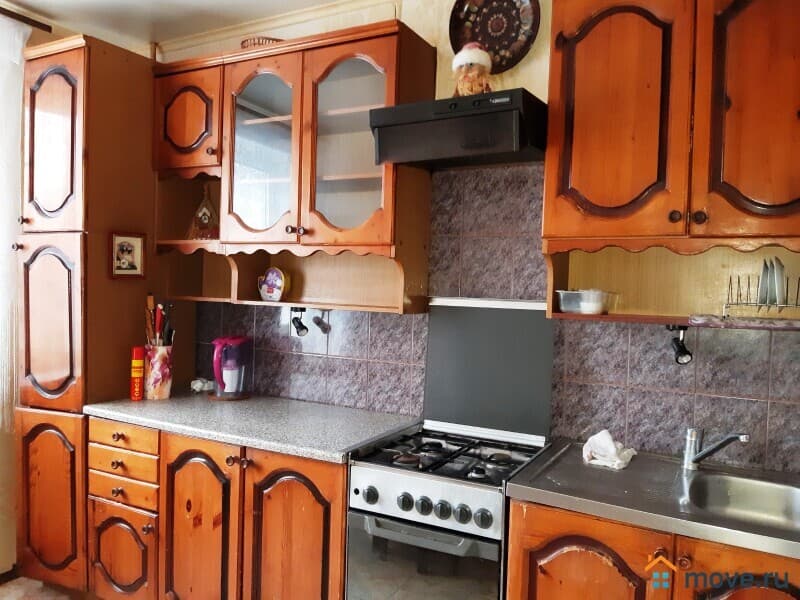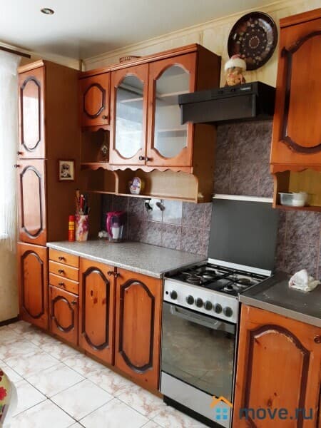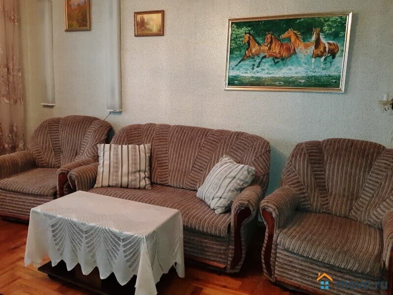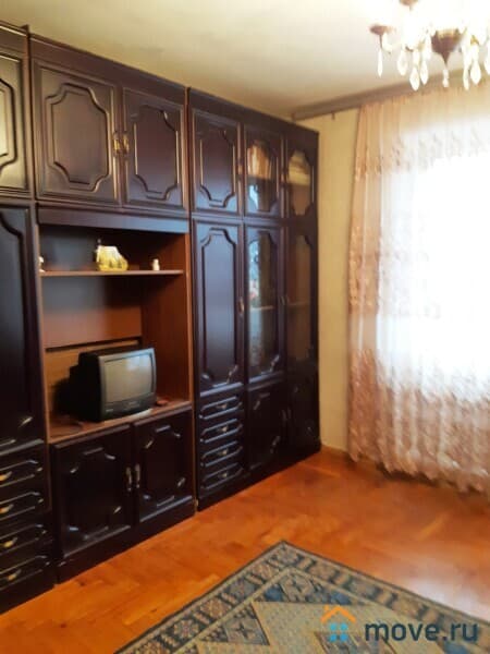 В прихожей два вместительных шкафа -купе, на кухне - гарнитур, холодильник, обеденный стол, стулья, в гостиной стенка, мягкая тройка, жур. столик, тв, во второй шкаф, диван, детская.