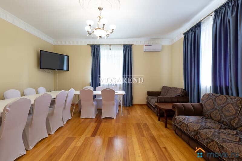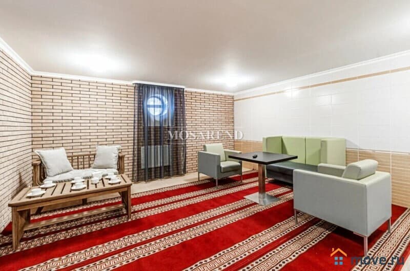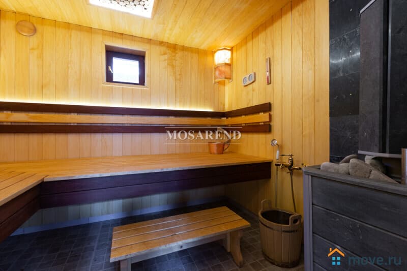 -На цокольном этаже большая комната отдыха - диваны, караоке, DVD, настольный теннис, массажная комната и спальная. Также здесь сауна, санузел с душевой кабиной.
