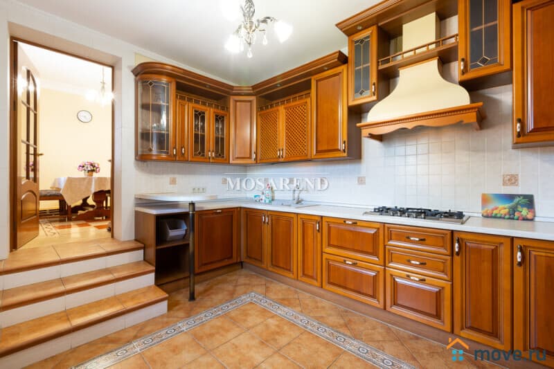 -На 1 этаже большая прихожая, переходящая в кухню-столовую, гостиную и в спальную. Имеется все необходимое кухонное оборудование (встроенные холодильник, духовой шкаф, посудомоечная машина), банкетная посуда и текстиль.