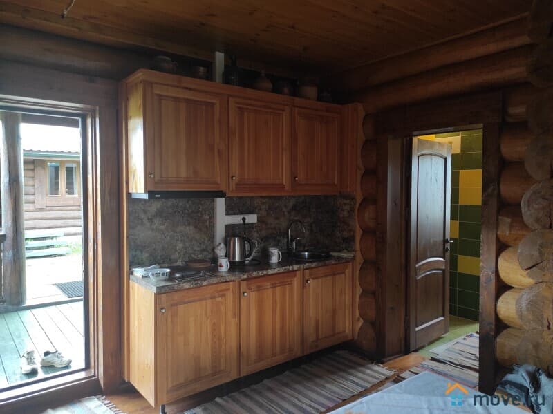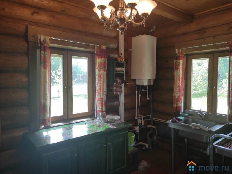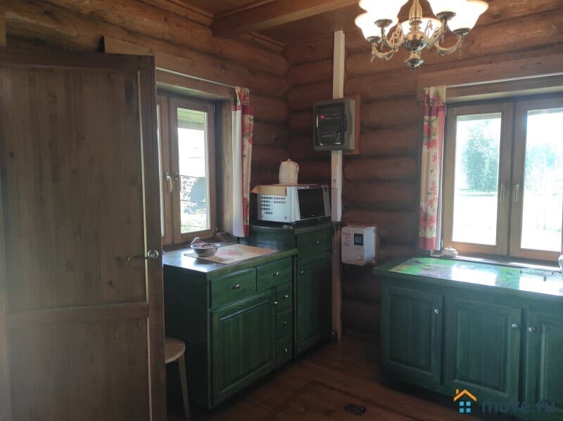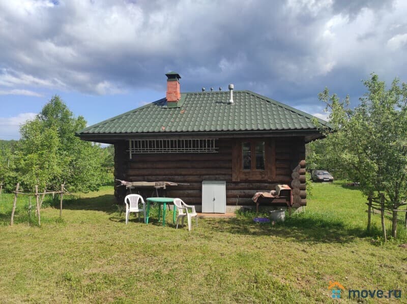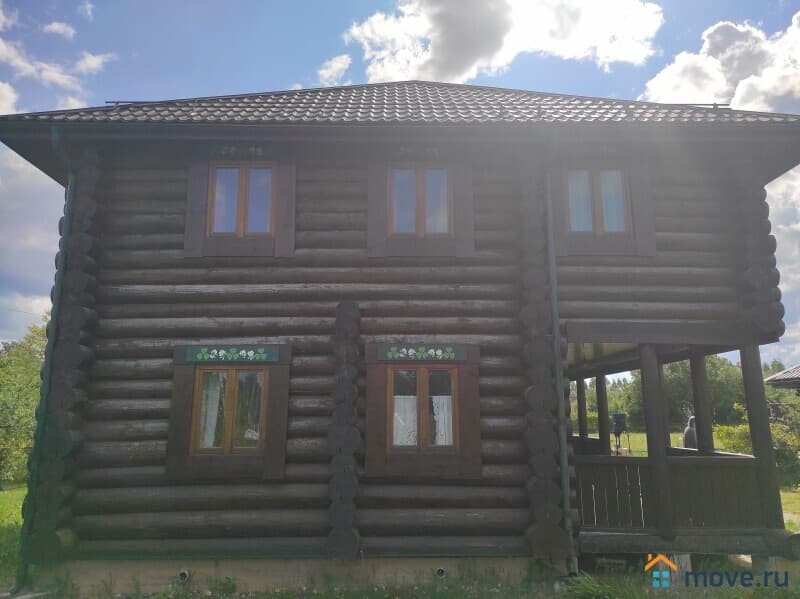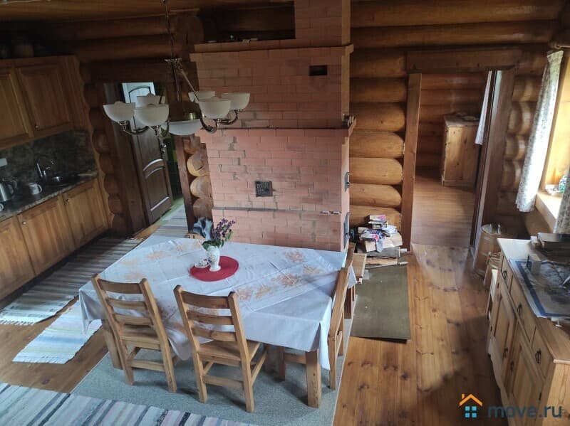 Двухэтажный бревенчатый дом (материал - отборный лес из Западной Двины) площадью 110.3 кв.м на участке 15 соток (ИЖС). Также на участке есть полноценый дом - летняя кухня, использование любое можно как Гостевой.