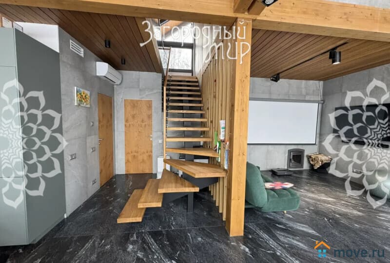 • 2-й этаж: 4 спальни (одна с гардеробной и одна со своим санузлом), санузел, гардеробная.