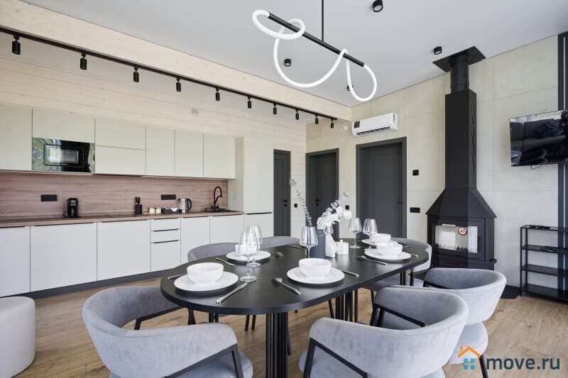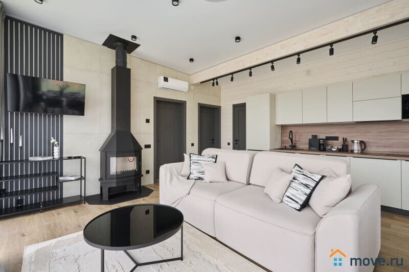 Дом оснащён системой «умный дом» и тёплыми полами, которые поддерживают комфортную температуру даже в морозы.?Есть телевизор с Алисой, чтобы включить любимую музыку, фильм или просто спросить, какая погода за окном.